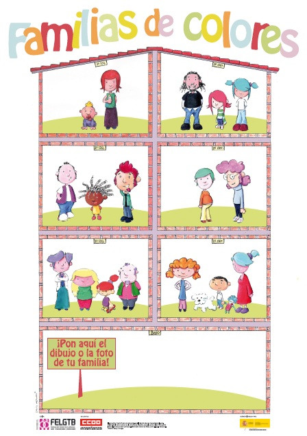 FELGTB y CCOO elaboró el siguiente material didáctico. Consta de carteles y de un CD interactivo indicados para trabajar la diversidad familiar y afectivo-sexual en infantil y primaria.